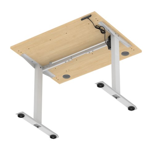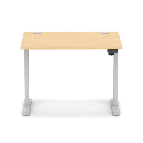 Air Lite 1000 x 800mm Height Adjustable Office Desk Maple Top Cable Ports Silver Leg