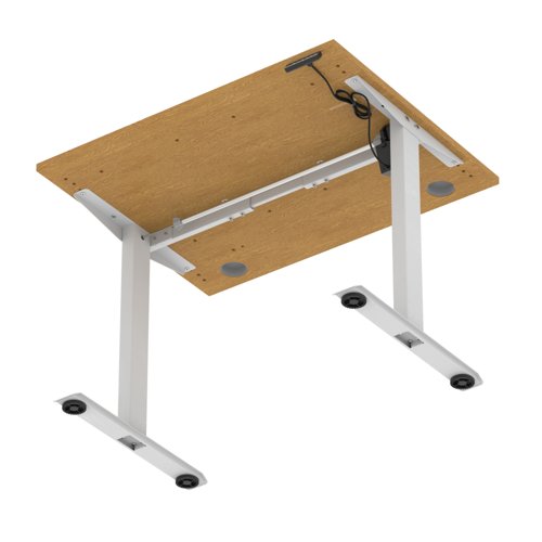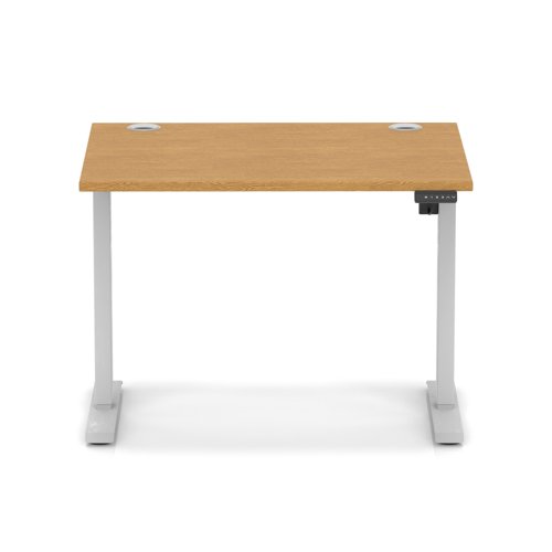 Air Lite 1000 x 800mm Height Adjustable Office Desk Oak Top Cable Ports Silver Leg