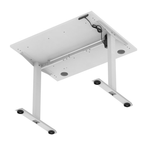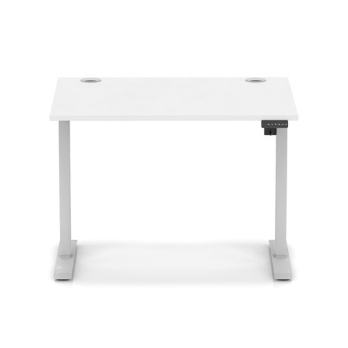 Air Lite 1000 x 800mm Height Adjustable Office Desk White Top Cable Ports Silver Leg