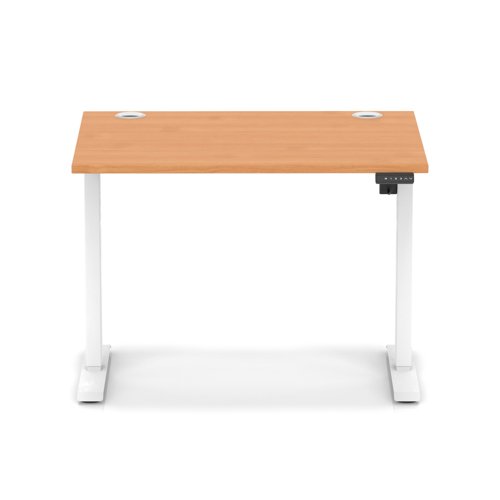 Air Lite 1000 x 800mm Height Adjustable Office Desk Beech Top Cable Ports White Leg
