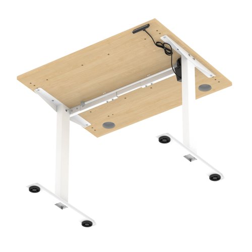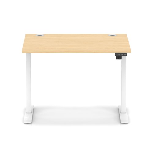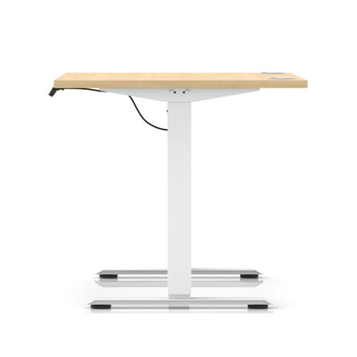 Air Lite 1000 x 800mm Height Adjustable Office Desk Maple Top Cable Ports White Leg