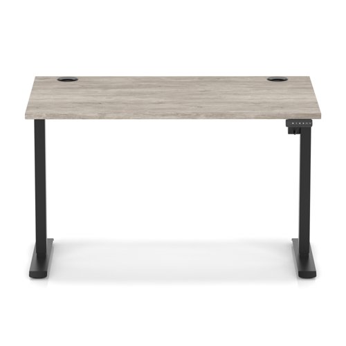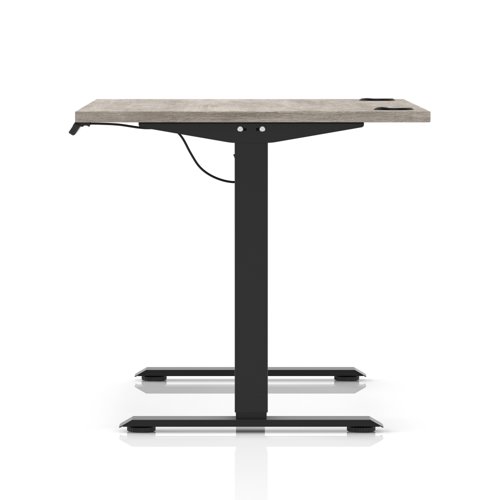 Air Lite 1200 x 800mm Height Adjustable Office Desk Grey Oak Top Cable Ports Black Leg