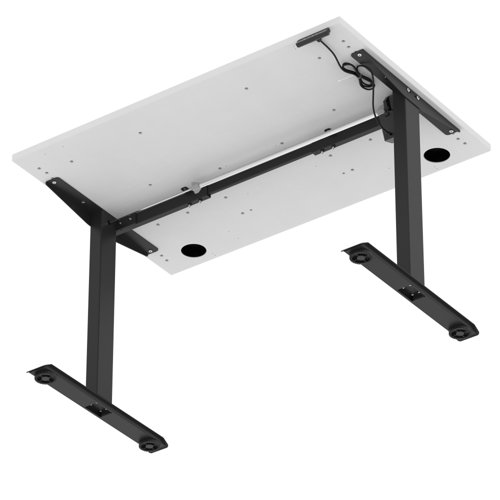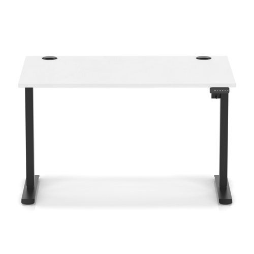 Air Lite 1200 x 800mm Height Adjustable Office Desk White Top Cable Ports Black Leg