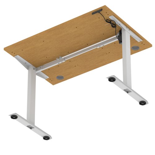Air Lite 1200 x 800mm Height Adjustable Office Desk Oak Top Cable Ports Silver Leg