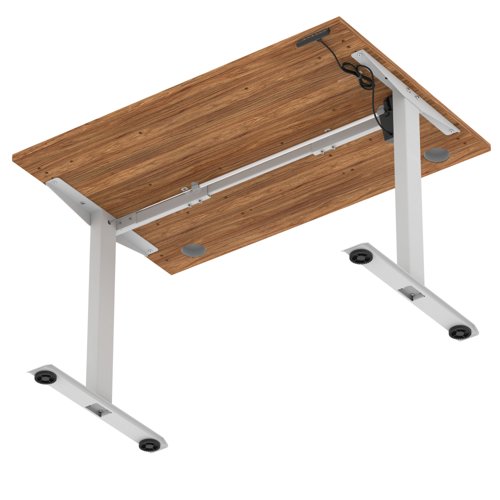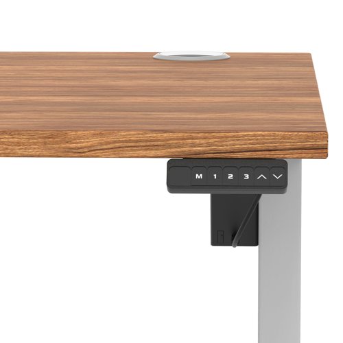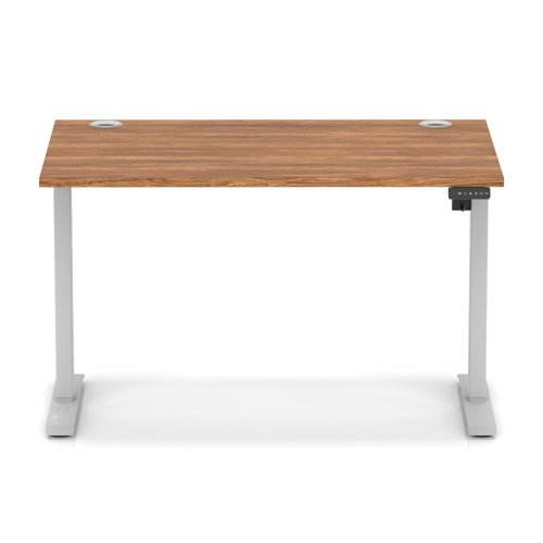 Air Lite 1200 x 800mm Height Adjustable Office Desk Walnut Top Cable Ports Silver Leg