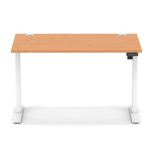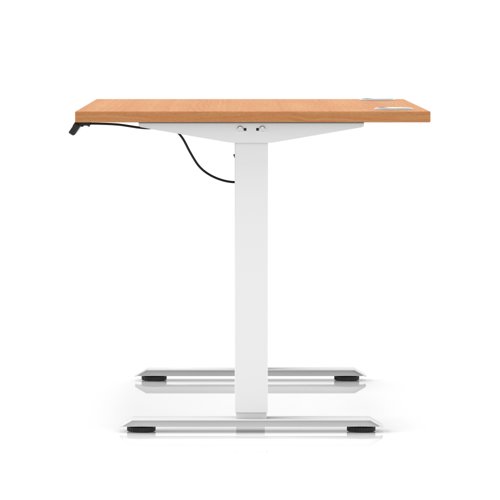 Air Lite 1200 x 800mm Height Adjustable Office Desk Beech Top Cable Ports White Leg
