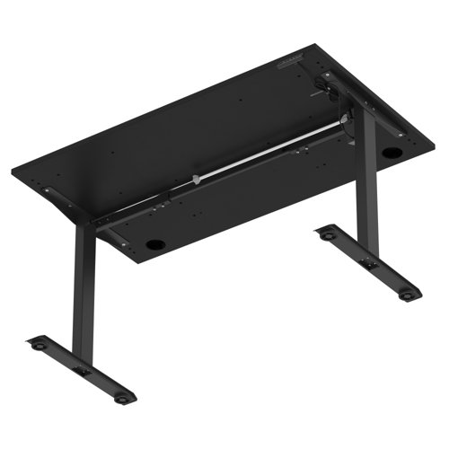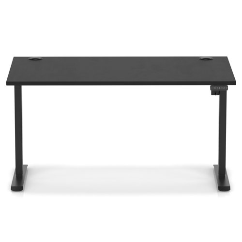 Air Lite 1400 x 800mm Height Adjustable Office Desk Black Top Cable Ports Black Leg
