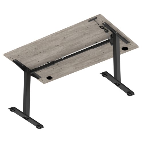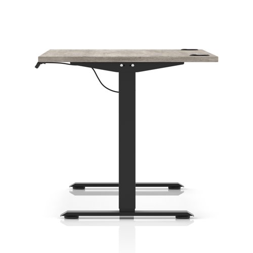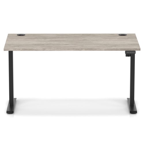 Air Lite 1400 x 800mm Height Adjustable Office Desk Grey Oak Top Cable Ports Black Leg