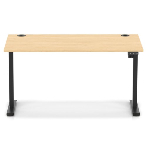Air Lite 1400 x 800mm Height Adjustable Office Desk Maple Top Cable Ports Black Leg