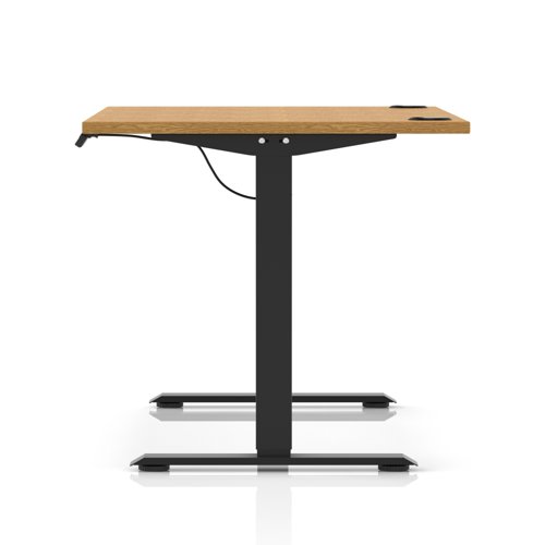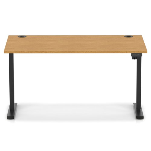 Air Lite 1400 x 800mm Height Adjustable Office Desk Oak Top Cable Ports Black Leg