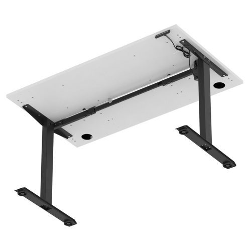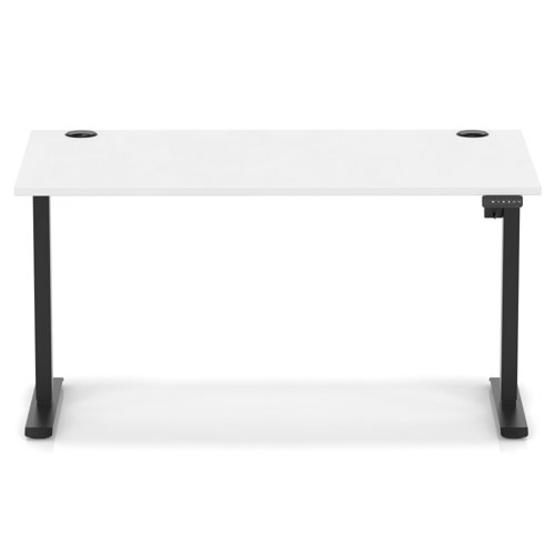 Air Lite 1400 x 800mm Height Adjustable Office Desk White Top Cable Ports Black Leg