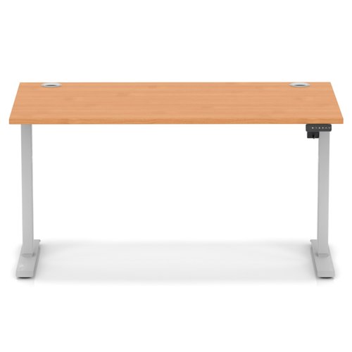 Air Lite 1400 x 800mm Height Adjustable Office Desk Beech Top Cable Ports Silver Leg