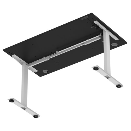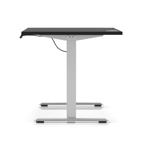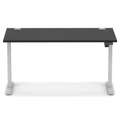 Air Lite 1400 x 800mm Height Adjustable Office Desk Black Top Cable Ports Silver Leg