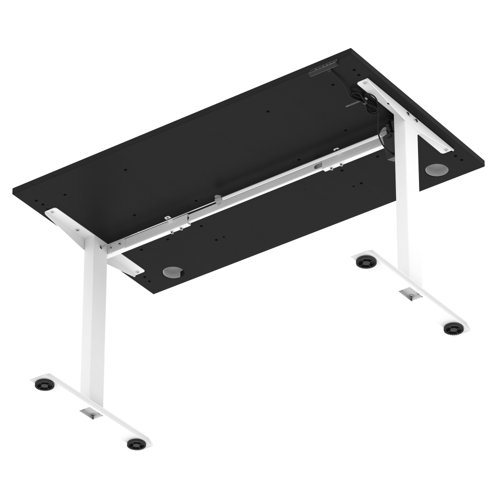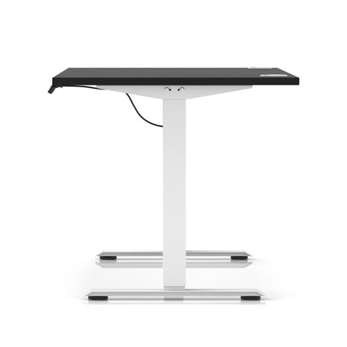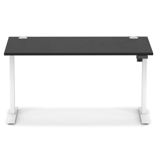 Air Lite 1400 x 800mm Height Adjustable Office Desk Black Top Cable Ports White Leg