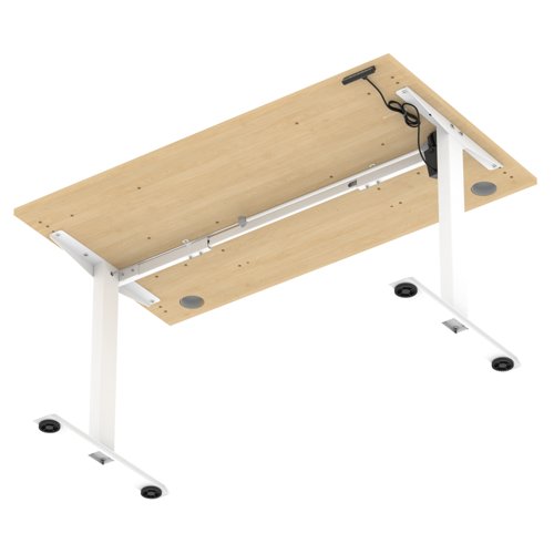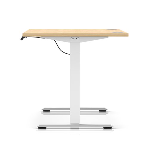 Air Lite 1400 x 800mm Height Adjustable Office Desk Maple Top Cable Ports White Leg