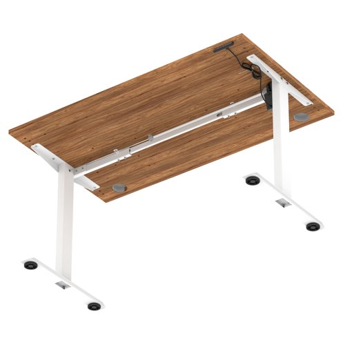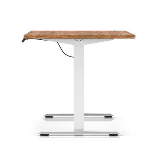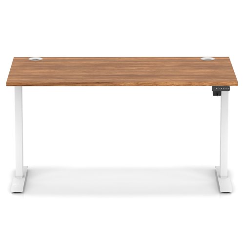 Air Lite 1400 x 800mm Height Adjustable Office Desk Walnut Top Cable Ports White Leg