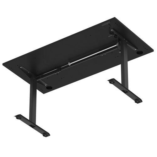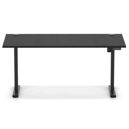 Air Lite 1600 x 800mm Height Adjustable Office Desk Black Top Cable Ports Black Leg