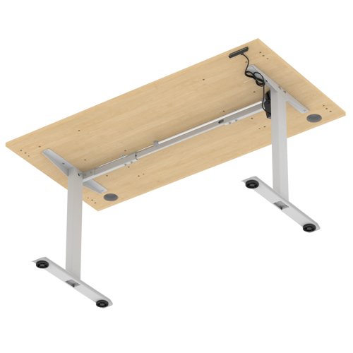 Air Lite 1600 x 800mm Height Adjustable Office Desk Maple Top Cable Ports Silver Leg