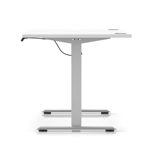 Air Lite 1600 x 800mm Height Adjustable Office Desk White Top Cable Ports Silver Leg