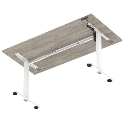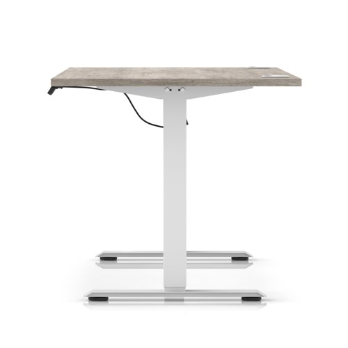 Air Lite 1600 x 800mm Height Adjustable Office Desk Grey Oak Top Cable Ports White Leg