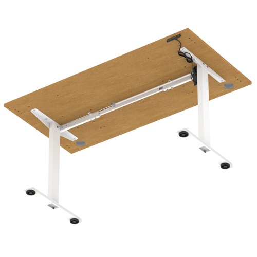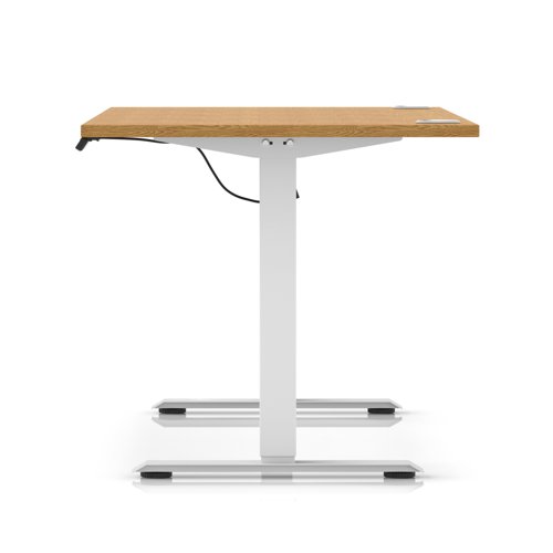 Air Lite 1600 x 800mm Height Adjustable Office Desk Oak Top Cable Ports White Leg
