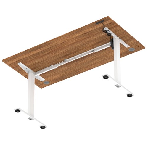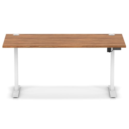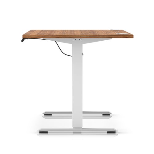 Air Lite 1600 x 800mm Height Adjustable Office Desk Walnut Top Cable Ports White Leg