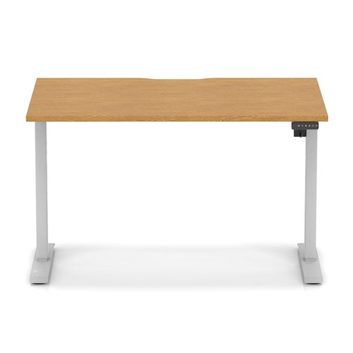 Air Lite 1200 x 800mm Scalloped Edge Height Adjustable Office Desk Oak Top Silver Leg