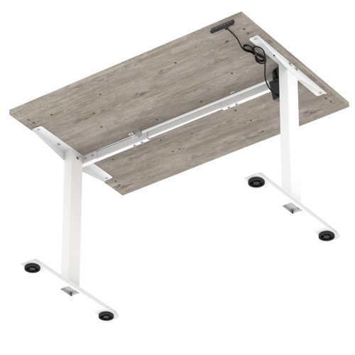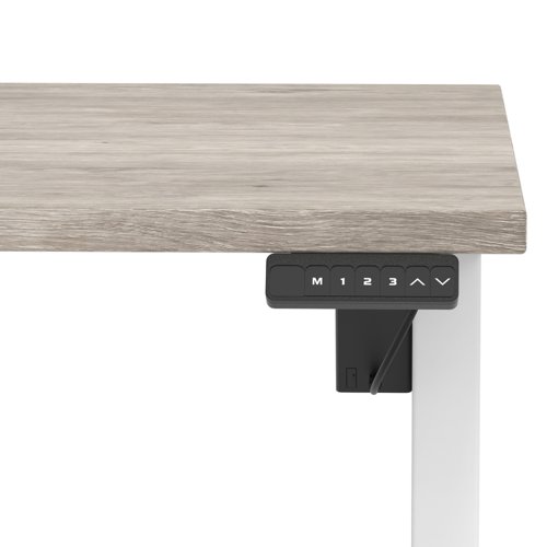 Air Lite 1200 x 800mm Scalloped Edge Height Adjustable Office Desk Grey Oak Top White Leg