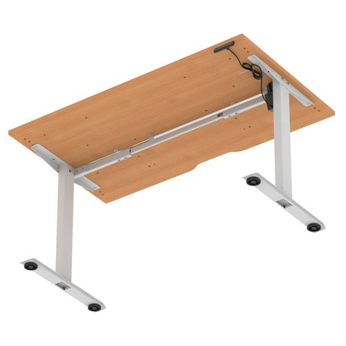 Air Lite 1400 x 800mm Scalloped Edge Height Adjustable Office Desk Beech Top Silver Leg