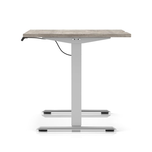 Air Lite 1400 x 800mm Scalloped Edge Height Adjustable Office Desk Grey Oak Top Silver Leg
