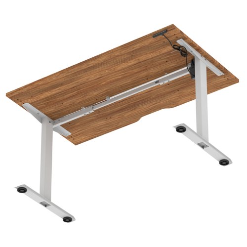Air Lite 1400 x 800mm Scalloped Edge Height Adjustable Office Desk Walnut Top Silver Leg