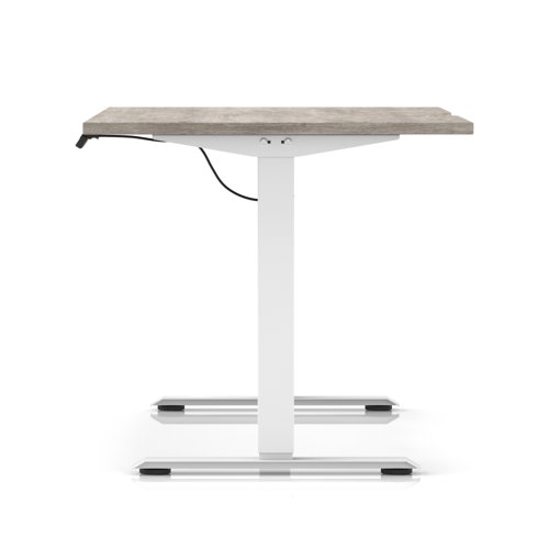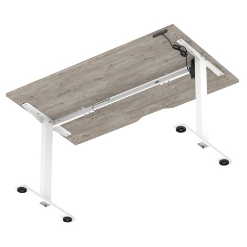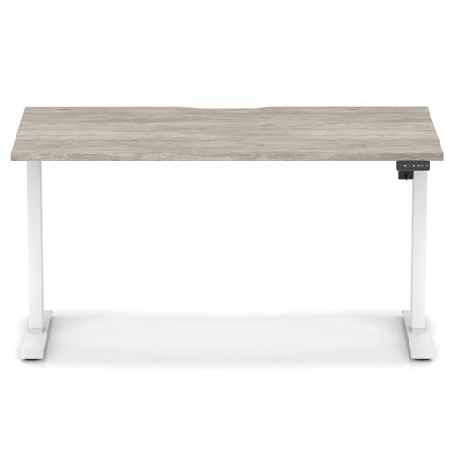 Air Lite 1400 x 800mm Scalloped Edge Height Adjustable Office Desk Grey Oak Top White Leg