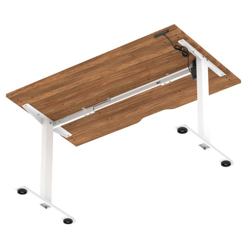 Air Lite 1400 x 800mm Scalloped Edge Height Adjustable Office Desk Walnut Top White Leg
