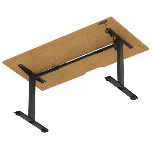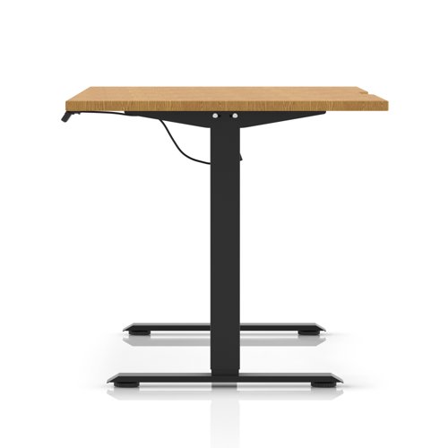 Air Lite 1600 x 800mm Scalloped Edge Height Adjustable Office Desk Oak Top Black Leg