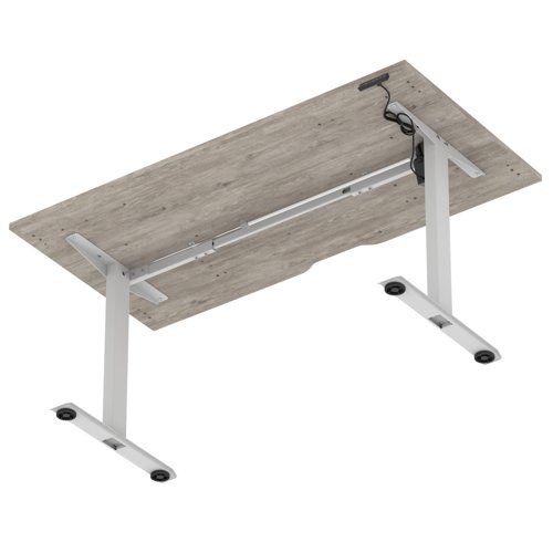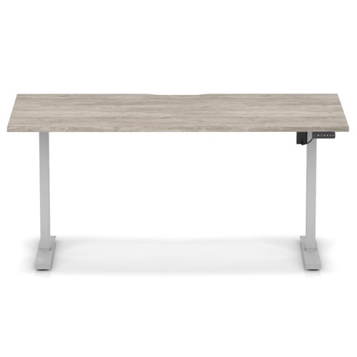 Air Lite 1600 x 800mm Scalloped Edge Height Adjustable Office Desk Grey Oak Top Silver Leg