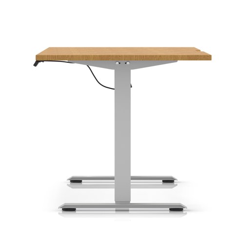 Air Lite 1600 x 800mm Scalloped Edge Height Adjustable Office Desk Oak Top Silver Leg