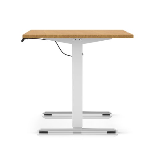 Air Lite 1600 x 800mm Scalloped Edge Height Adjustable Office Desk Oak Top White Leg