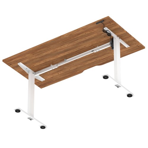 Air Lite 1600 x 800mm Scalloped Edge Height Adjustable Office Desk Walnut Top White Leg