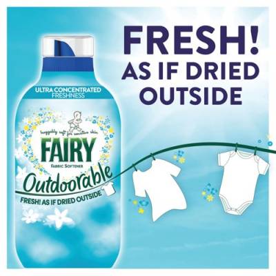Fairy Outdoorable Fabric Conditioner is a hypoallergenic fabric conditioner designed to provide a fresh, line-dried scent even when clothes are dried indoors. With musty odour defence, laundry will smell fresh and floral, leaving fabrics feeling soft and easier to iron. Supplied in a recycled plastic bottle which is fully recyclable, this fabric conditioner gives 84 washes with a volume of 1,176ml.