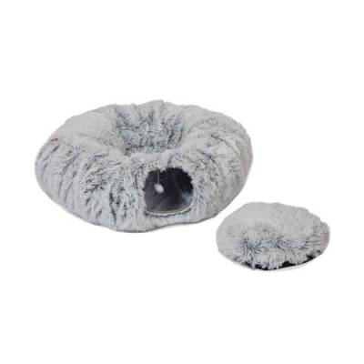 - The perfect place for both play and relaxation for cats, this playful tunnel features a snug and cosy fibre-filled middle for snoozing. Made with soft plush fur fabric, the tunnel folds flat for easy storage. The mattress is removable and fully machine washable for hygiene. Supplied in grey.