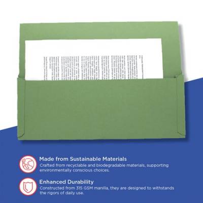 This Exacompta Guildhall legal wallet is made from premium quality 315gsm manilla and features a 35mm pocket, which can hold up to 180 sheets. Sized for legal briefs, each wallet measures 356 x 254mm (10 x 14 inches). This pack contains 50 green legal wallets, ideal for colour coordinated filing.