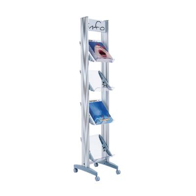 Plexiglass Shelf Displays made from sturdy aluminium with metallic headers and supplied with 4 multi-directional castors. Shelves can be adjusted to 0; 45 and 75 degree angles. Supplied flat-packed; easy to assemble with no tooling required.