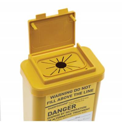 - These sharps disposal bins are designed for the safe and effective disposal of contaminated sharps requiring incineration. Providing protection for the user and prevention from sharps injuries, contamination and the spreading of diseases.