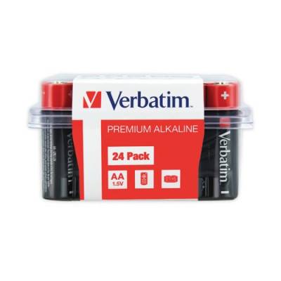 - Verbatim batteries keep your energy hungry electronic devices powered up. These alkaline batteries are reliable and long lasting. Recommended for use in devices such as portable radios, MP3 players, cameras, toys and TV/DVD remote controls, equipment that requires constant power for long periods of time. A large pack of 24 AA alkaline batteries.