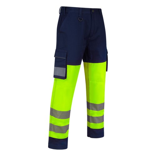 240gsm 65% Polyester, 35% Cotton. Twill Fabric Multi pocket design 2 Side hip pockets 2 rear pocket with hook and loop flap Metal YKK zip and teeth 8 belt loops, with D-ring on the front 2 hook and loop closure thigh pockets Internal knee pad pouches (Doesn’t include knee pads) Triple stitched inside leg and crutch seam for increased reinforcement Available in short (S), regular, and tall fit (T) Conforms to EN ISO 13688:2013+A1:2021 Conforms to EN ISO 20471:2013 +A1:2018 Class 1 high visibility