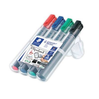 - The Lumocolor flipchart markers are ideal for use on paper as the ink does not bleed through. The markers come in a STAEDTLER desktop box, which gives quick access and storage for the markers. Supplied in a pack of 4, the assorted coloured markers have a line width of approximately 2.0mm and the water based ink washes out of many textiles.