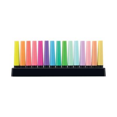 The Stabilo Boss Original is Europe's best selling, most popular highlighter. With its distinctive shape and wide variety of colours, it is a high quality highlighter that writes further, lasts longer and will not dry out. The wedge shape tip can be used to draw broad and fine lines, making it perfect for highlighting, underlining text and even colouring. The Anti Dry Out Technology means the cap can be left off for up to 4 hours and the colours will not fade. This Deskset contains the following colours: Yellow, Orange, Green, Pink, Blue, Red, Lilac, Lavender, Turquoise, Milky Yellow, Creamy Peach, Hint of Mint, Touch of Turquoise, Pink Blush and Lilac Haze.