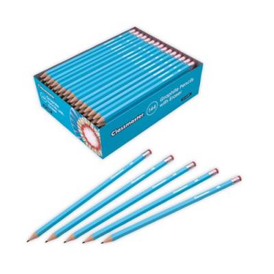 Ideal for use in schools, colleges, offices and even at home, these Classmaster HB pencils with eraser tips are great for sketching, precision drawing and shading. Each pencil is also topped with a handy eraser. With a standard sized hexagonal barrel, each Classmaster HB pencil can be held comfortably by a child, and the quality lead stands up to heavy-duty use without breakage. Ideal for topping up supplies or for using in your pencil case.