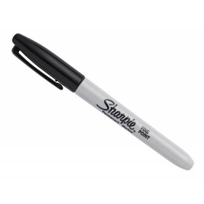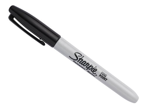 - The Sharpie® Fine Tip Permanent Marker will write on most surfaces and has a 1mm tip. It is ideal for everyday use at home, on the job site, etc. The high-quality ink dries quickly and resists both fading and water. The cap quickly identifies the colour inside, there is also a handy clip that allows the marker to be attached to a pocket or folder.