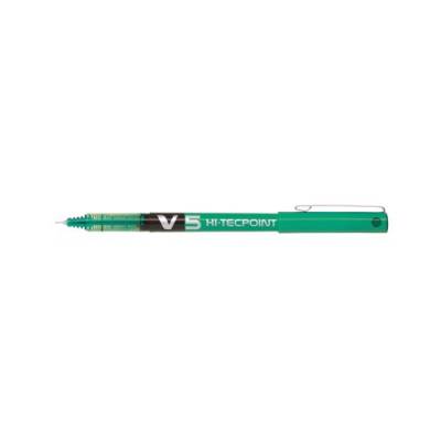 - This Pilot V5 Hi-Tecpoint Rollerball Pen contains pure liquid ink for smooth writing and long lasting colour. The extra fine 0.5mm nib writes a 0.3mm line width, perfect for detailed annotation, technical drawing and more. The pen also features ink flow control system and large viewing window for monitoring remaining ink levels. This pack contains 12 green pens.